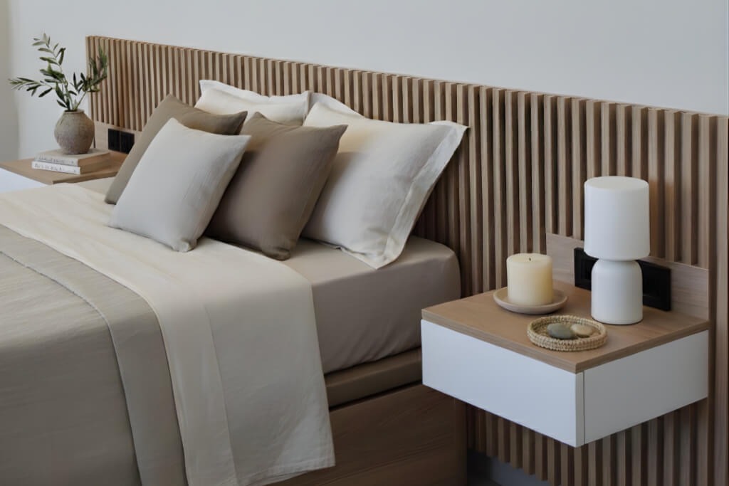 Combina el cabecero con ropa de cama suave, tonos neutros, cojines variados y materiales naturales. Un dormitorio no es solo vista: también es tacto y sensación.