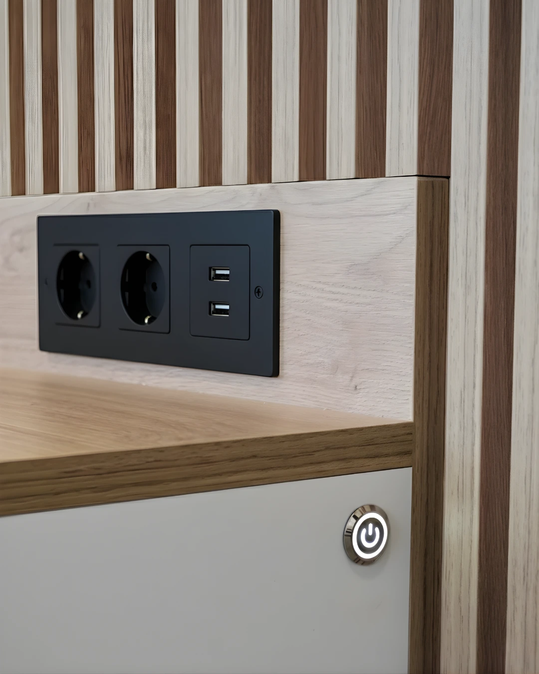 Tendrás la posibilidad de controlar el sistema de encendido con sensor táctil integrado, mando a distancia o cable para conmutar o salida cable con schuko, además de regular la temperatura de la luz LED para ambientes más cálidas o neutros. También cuenta con la opción de integrar enchufes o tomas eléctricas existentes dentro del diseño.