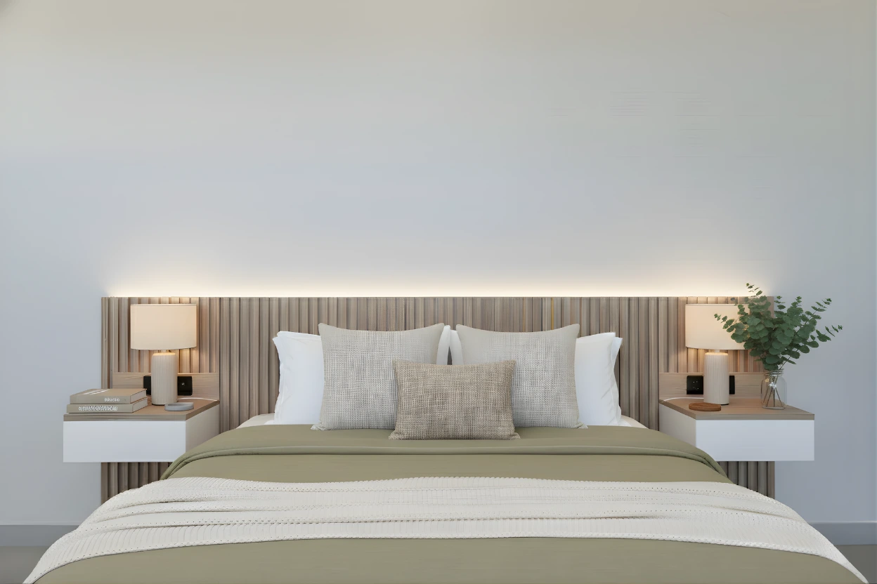 ListNight es un cabecero a medida con listones de madera que incluye luz LED integrada y mesitas de noche flotantes, pensado para quienes desean un dormitorio con estilo, orden y funcionalidad. Su diseño limpio y contemporáneo transforma cualquier dormitorio en un espacio acogedor y moderno.