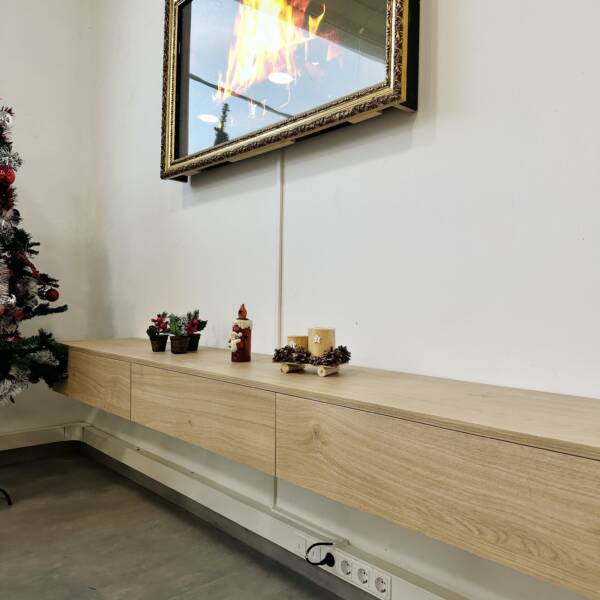 Mueble o consola flotante a pared de diseño con cajones para televisor.