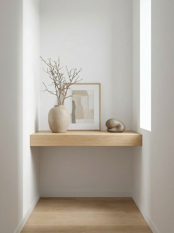 La repisa Viax, con su diseño en inglete y sistema flotante sin herrajes visibles, combina elegancia y funcionalidad. Ideal para recibidores, pasillos y zonas decorativas, se fabrica a medida, permitiendo personalizar su largo y fondo. Está disponible en distintos tipos de acabados: lacado mate con color a seleccionar, Efecto Nature y Chapas Naturales, para adaptarse a cualquier estilo de decoración. Se entrega totalmente acabada y lista para instalar, aportando estilo y limpieza visual a cualquier espacio.